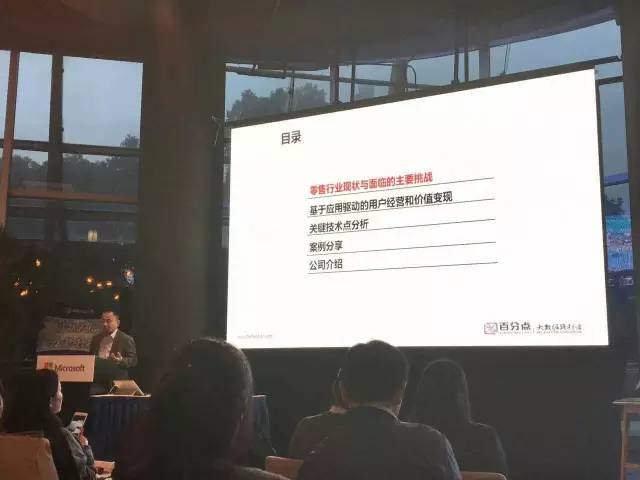 百分点自去年以来,作为微软业务合作伙伴,多次联合微软共同举办行业交流会议,积极推动行业发展,已经给行业带来实际价值。百分点凭借在金融、智能制造、政府、零售等领域深耕多年的经验,以及拥有的比较成熟的技术和产品,受邀在此次论坛上,分享了金融和零售行业大数据解决方案,以及成功实施的案例。